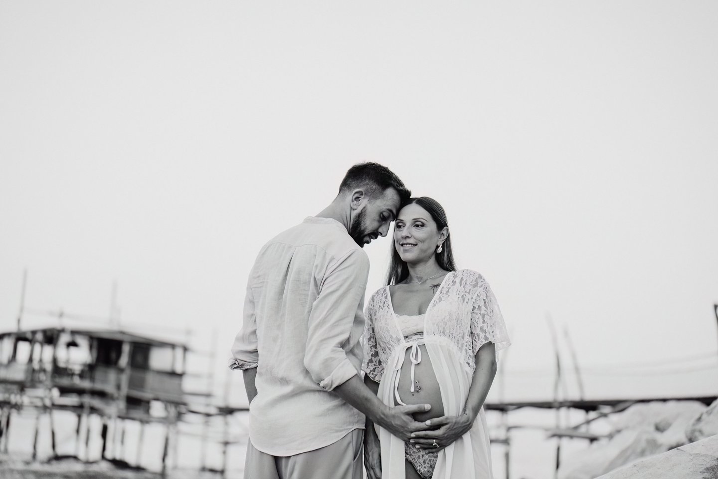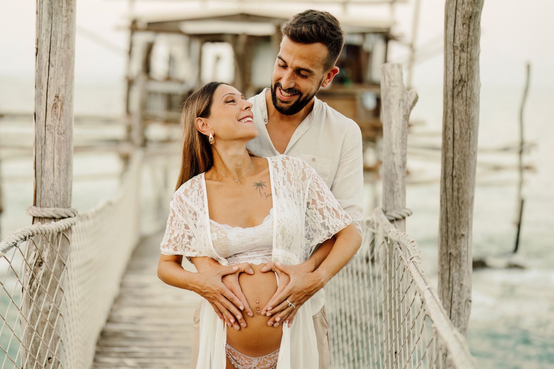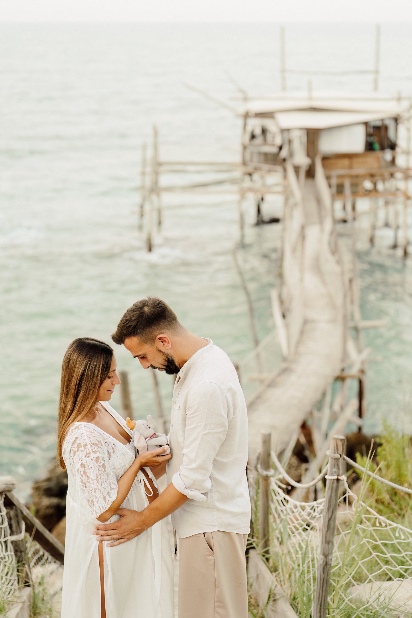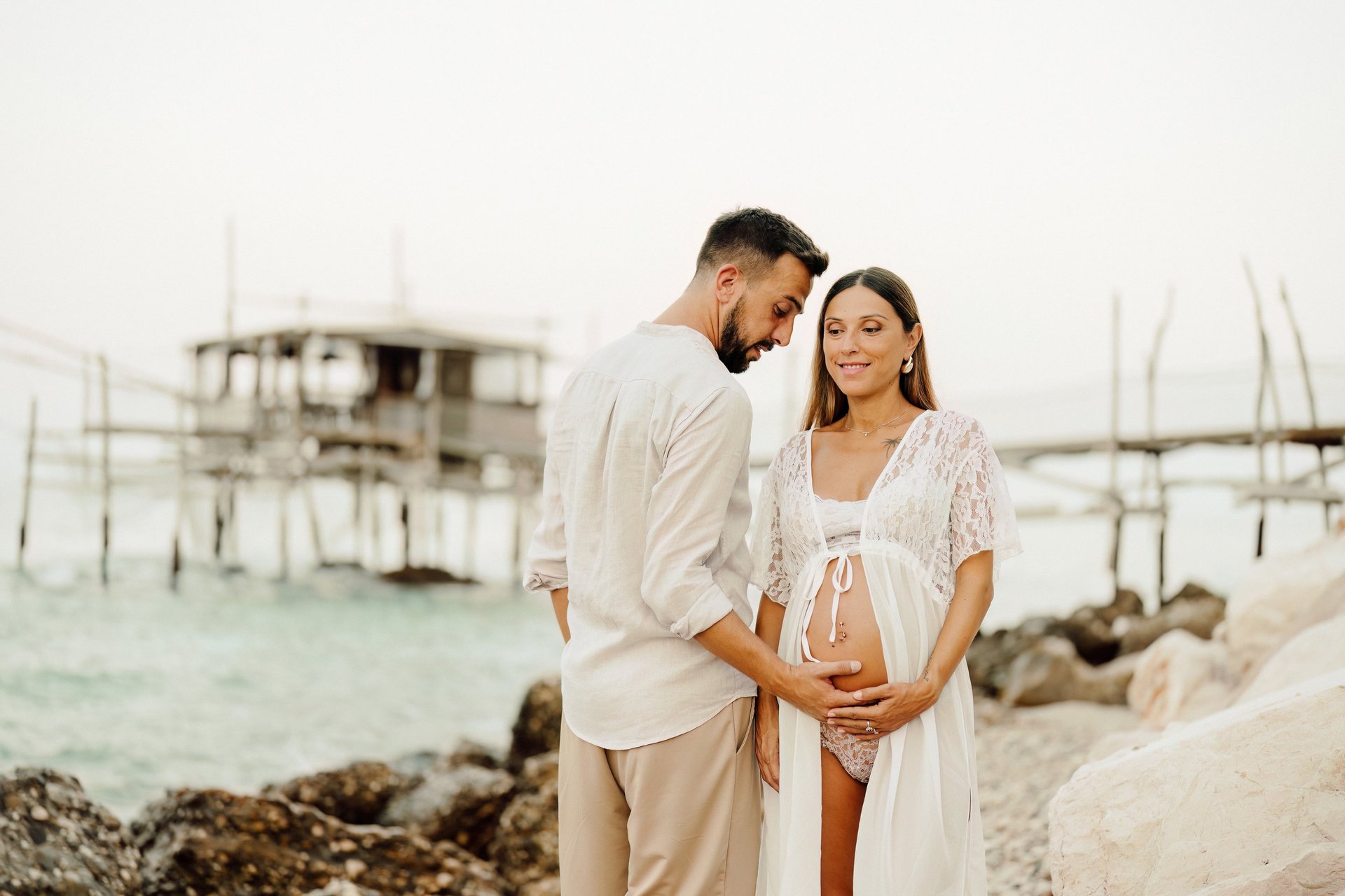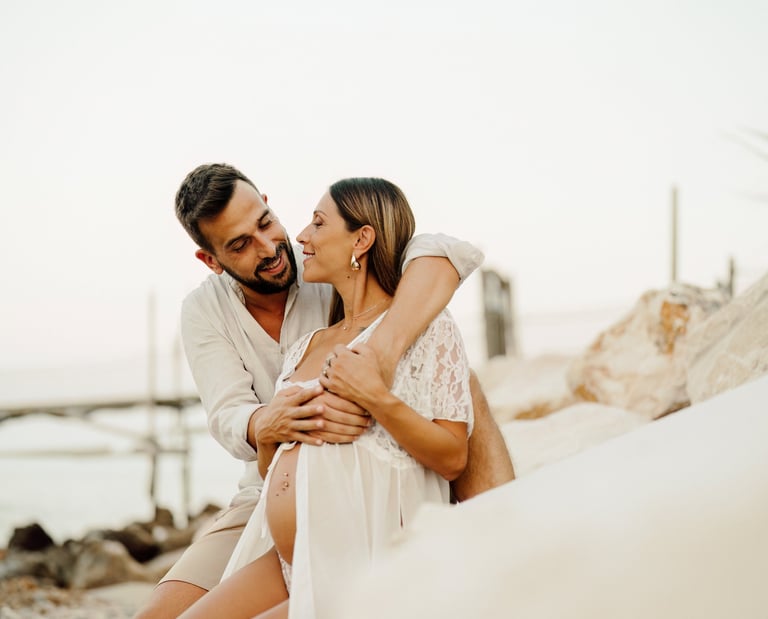 La sessione di maternità di Martina e Lorenzo è stata un'esperienza magica, immortalata tra le onde del mare e la suggestiva bellezza del trabocco abruzzese.