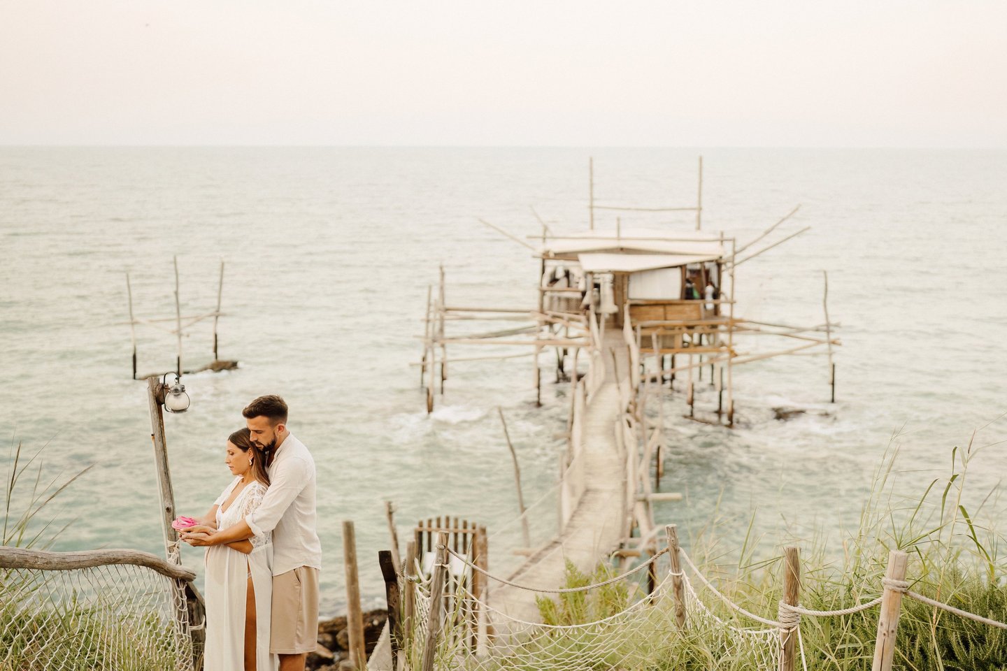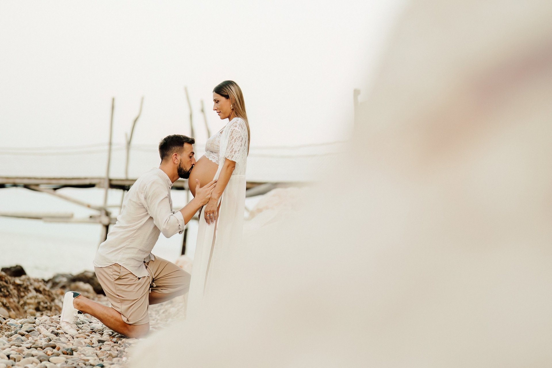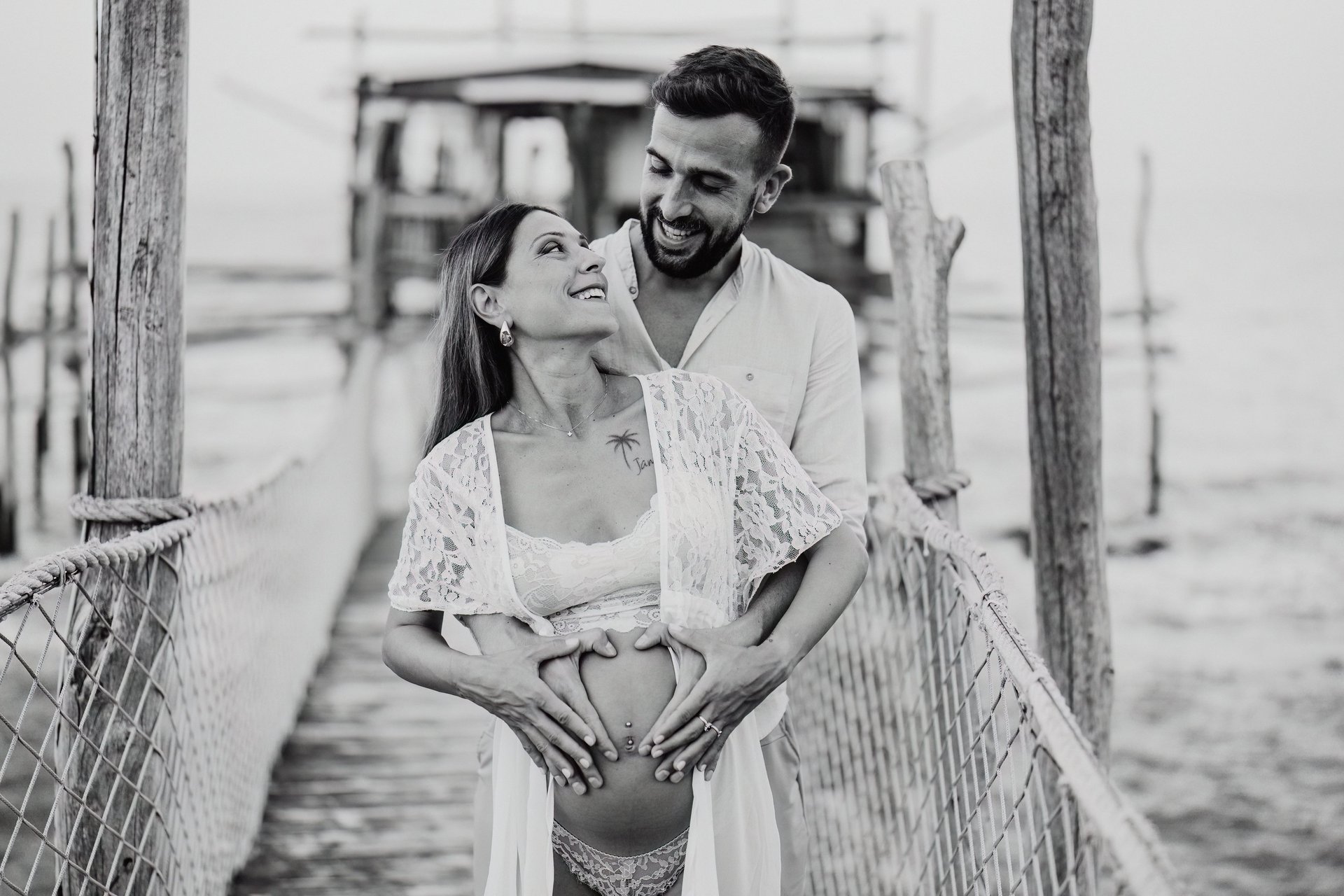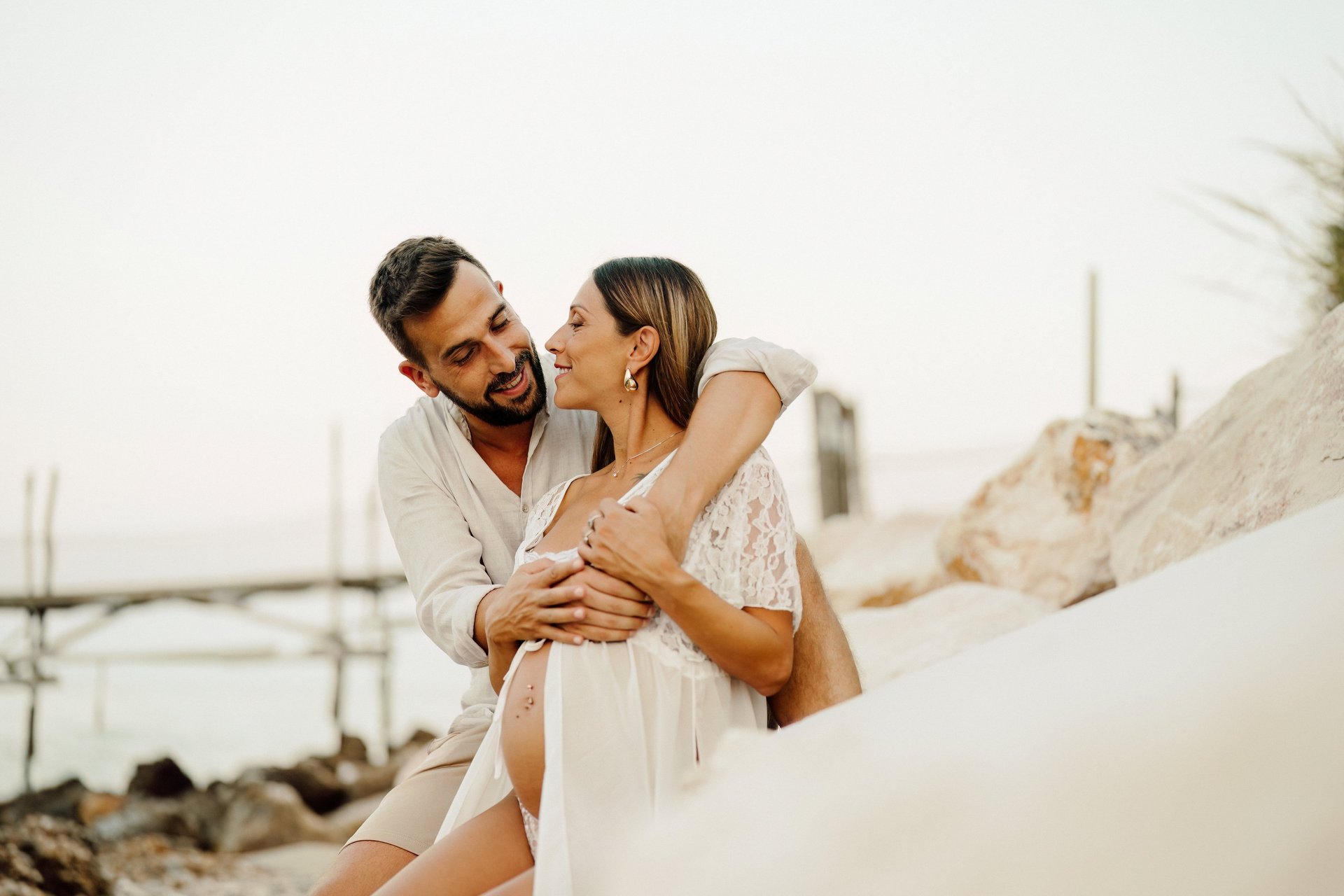 La sessione di maternità di Martina e Lorenzo è stata un'esperienza magica, immortalata tra le onde del mare e la suggestiva bellezza del trabocco abruzzese.